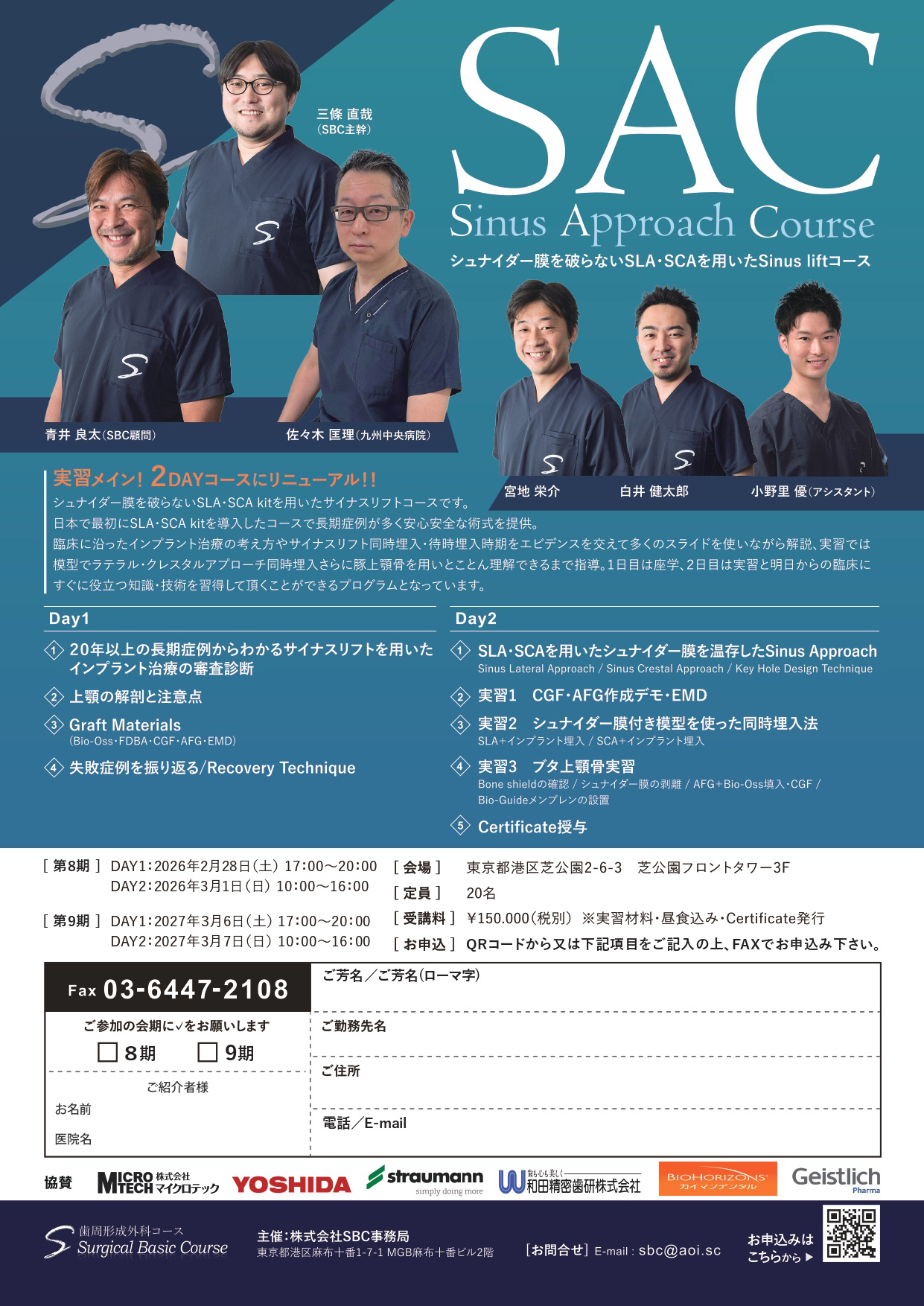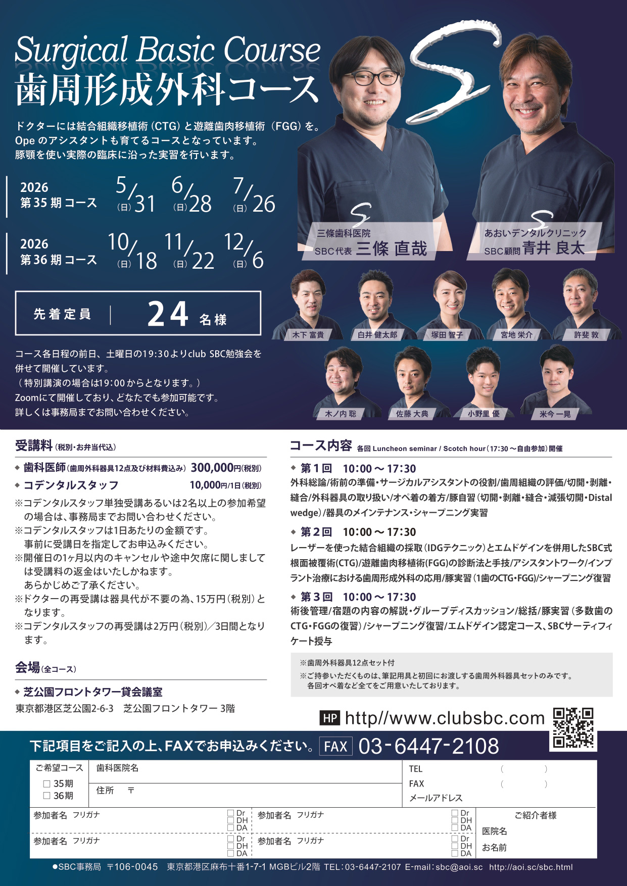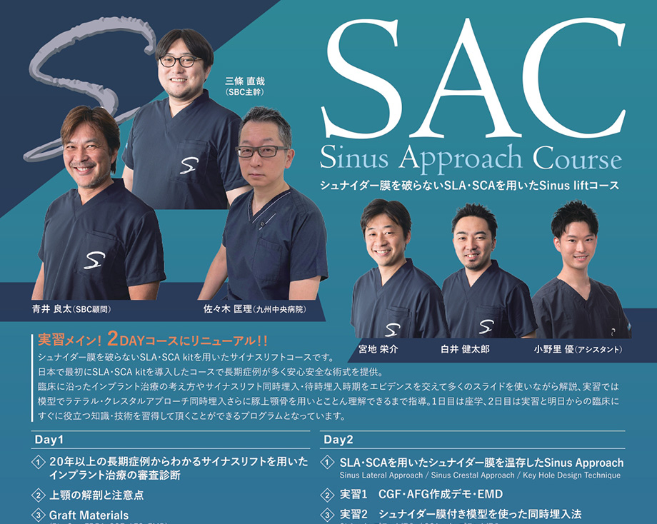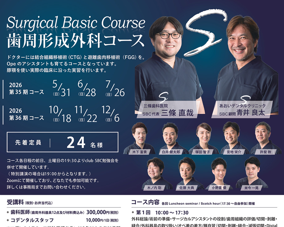 皆様にはSBCコースで歯周形成外科の基本と原理原則を身に着けていただき、臨床のステップアップに繋げていただければと思います。